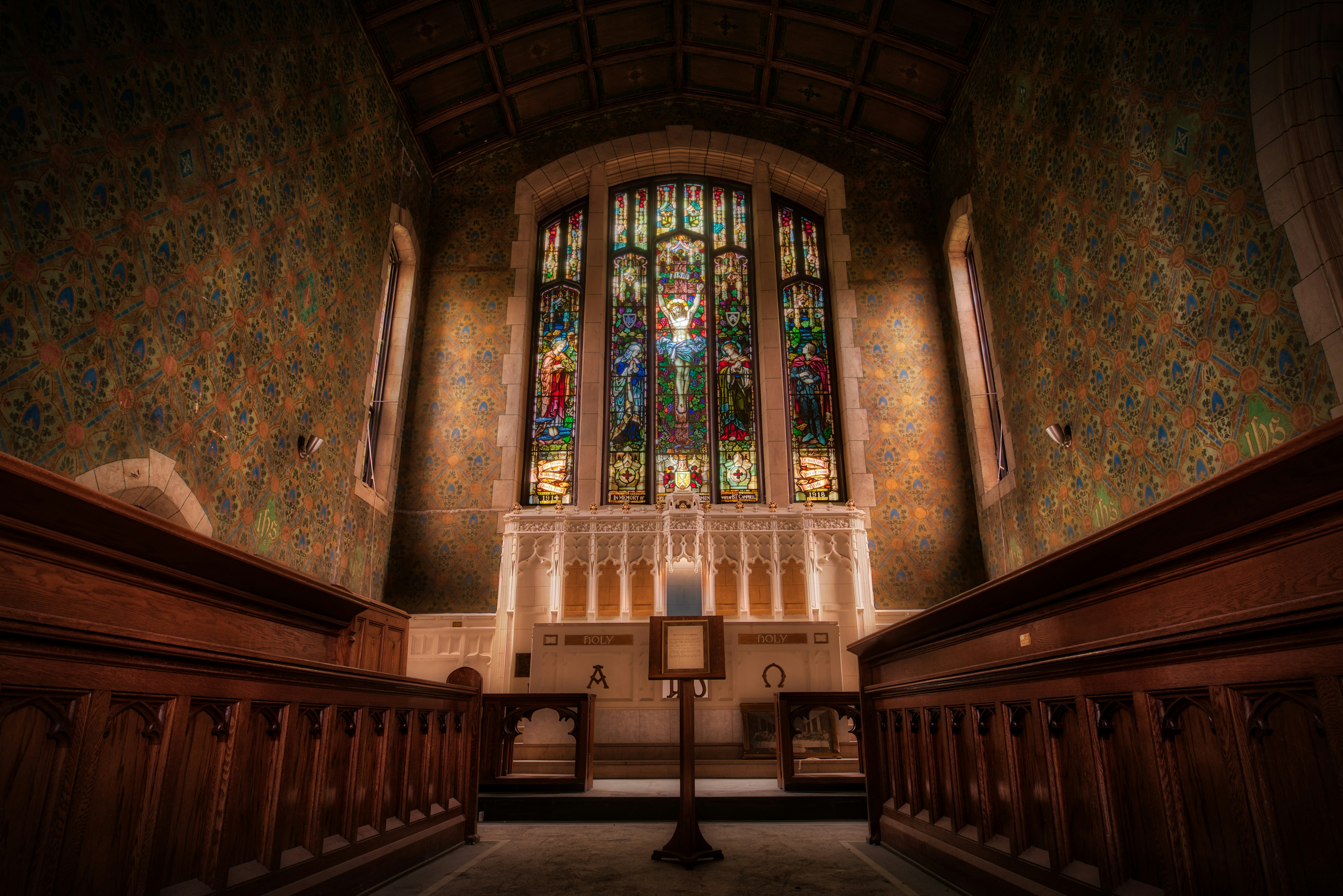 The light shining through the stained glass